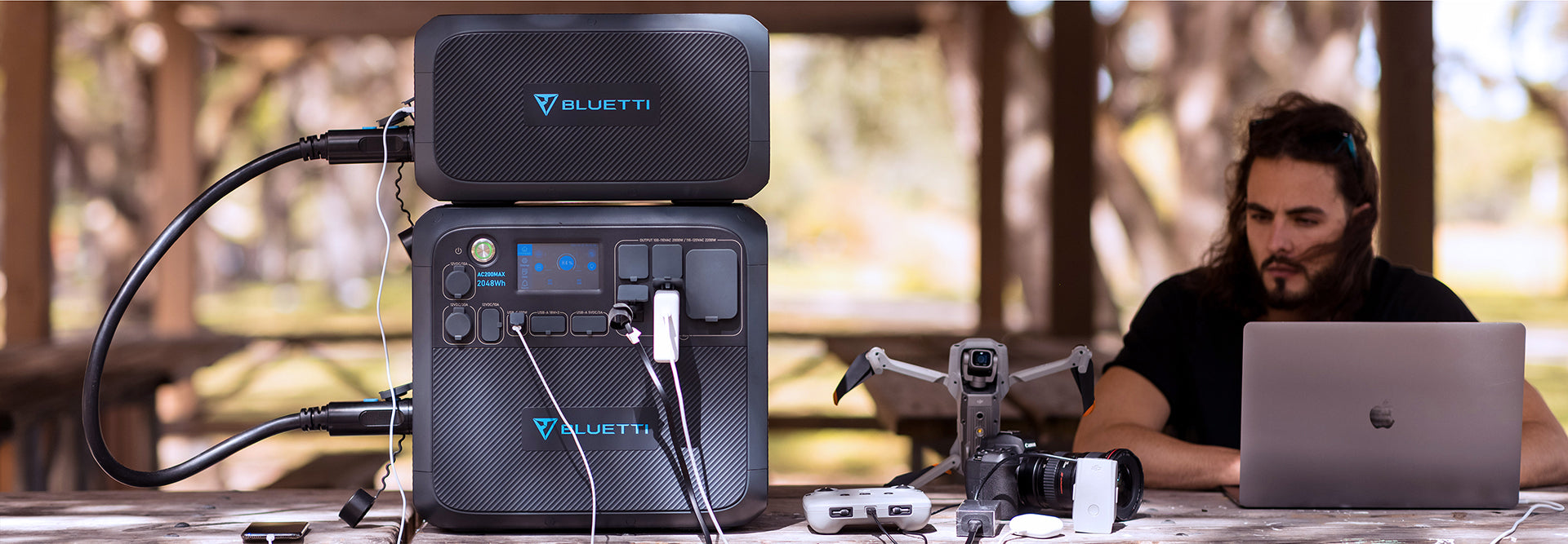 BLUETTI first expandable power station-AC200MAX with 2,048Wh LiFePO4 cells and 2,200W pure sine wave inverter.