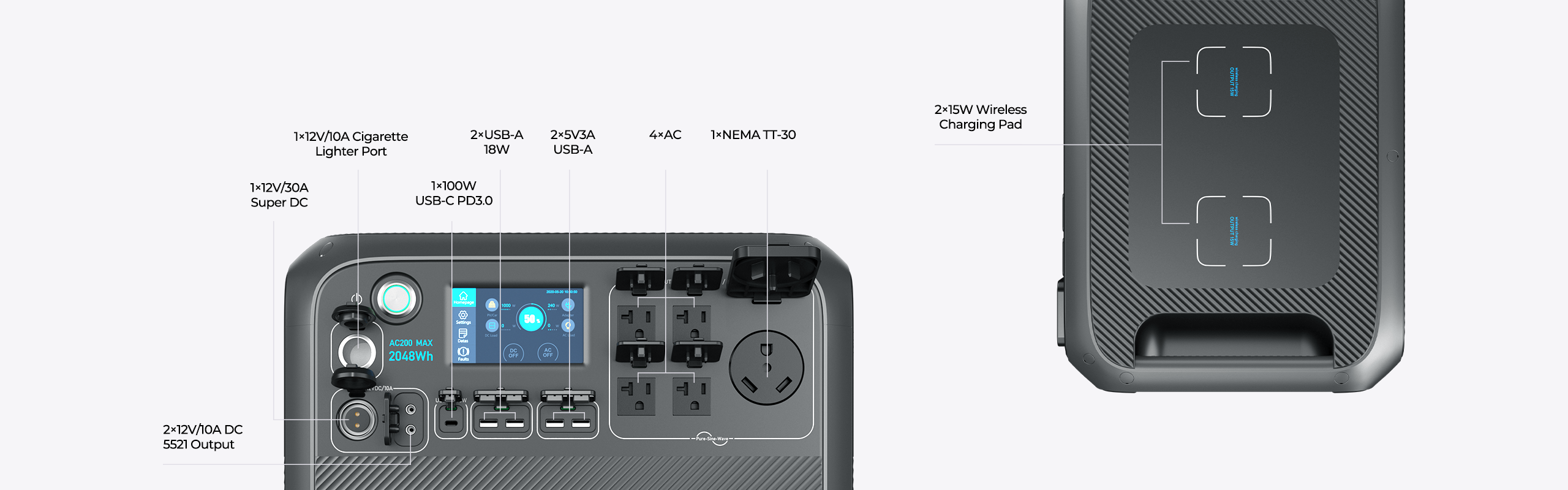 3. Output Port: AC200MAX has a 12V/30A NEMA TT-30 port.
