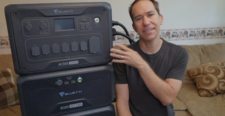 From the Sun & Wall:Plug in the adapter and solar panels for up to 3,000W input, so you can also top up the AC300 + B300K for about 1.5 hours.