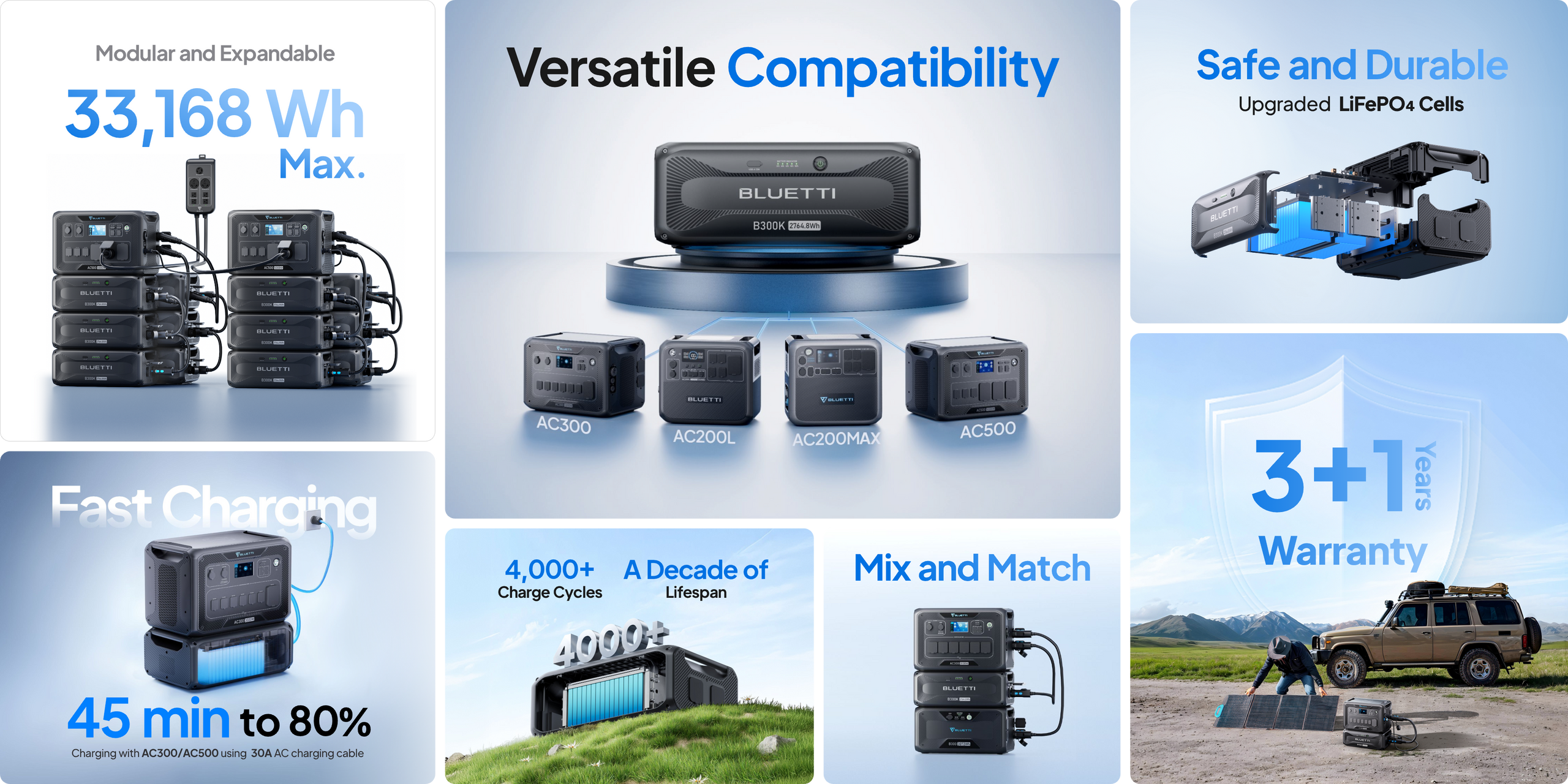 - Maximize Your Power: Expand up to a massive 33,177.6Wh when connected with AC500 for diverse energy needs.