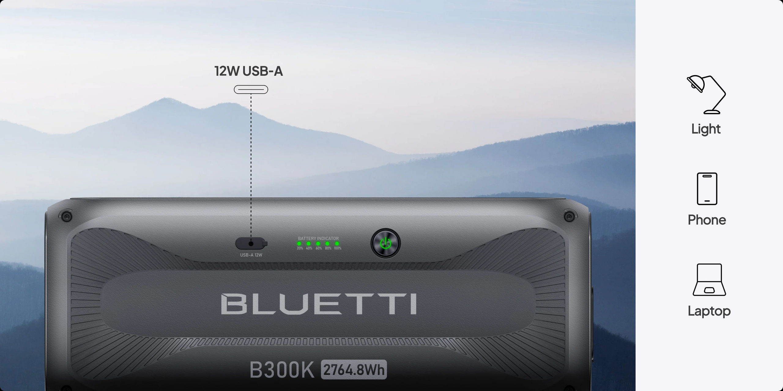 The B300K isn't just an add-on; it's also a versatile power hub. With a USB-A port, it's perfect for keeping your essentials like smartphones, tablets, or fans charged, whether you're ready to make an urgent call or message, eager to share beautiful moments with your friends, or try to stay cool while camping in a tent. Power is always within reach, wherever life takes you.