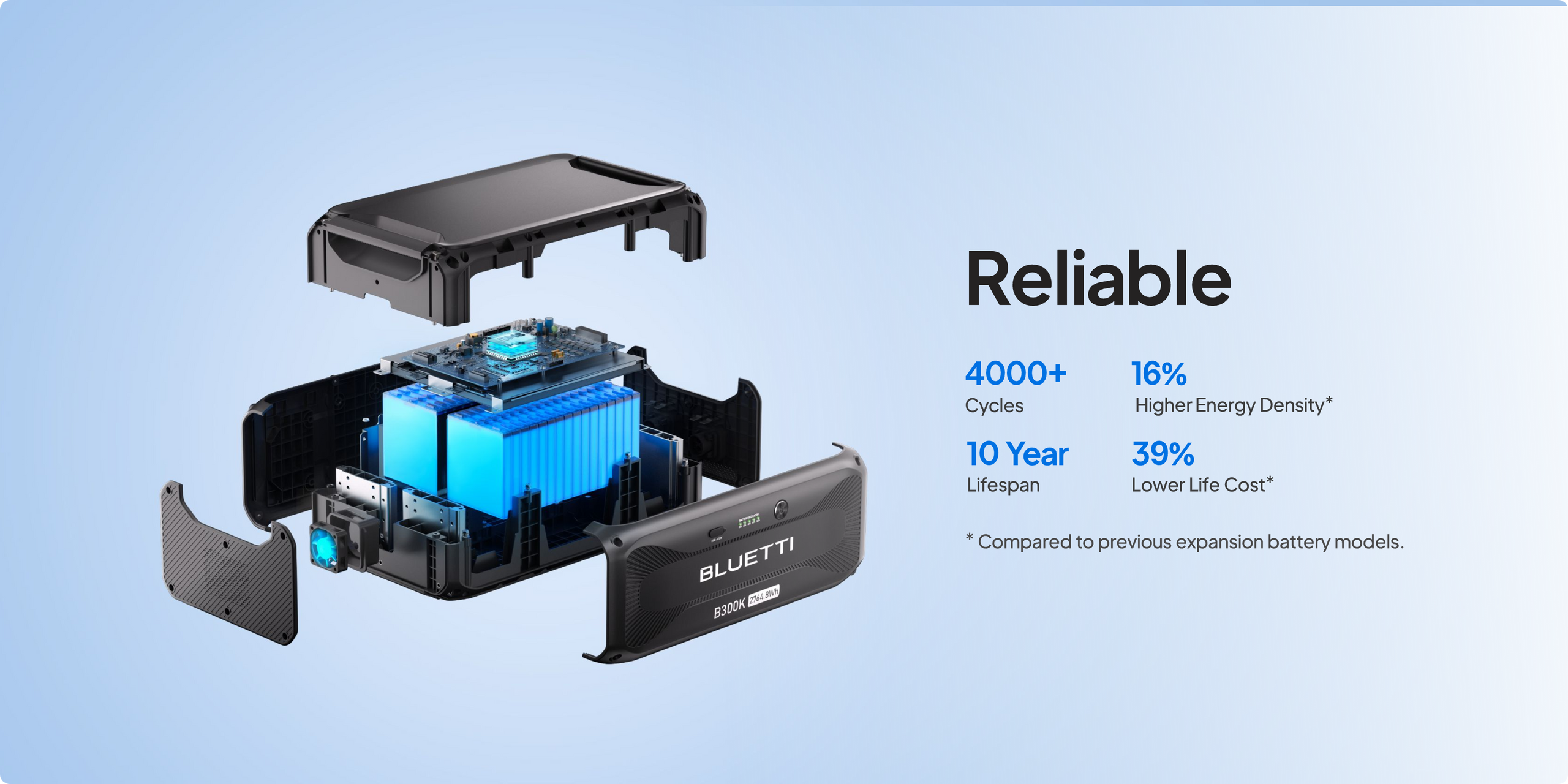 The B300K adapts to your life, whether you're safeguarding your home during outages or powering an off-grid adventure. Stack multiple B300K batteries, or mix and match with B300, and B300S models for a customized energy solution that ensures you're never caught without power, no matter where you are.