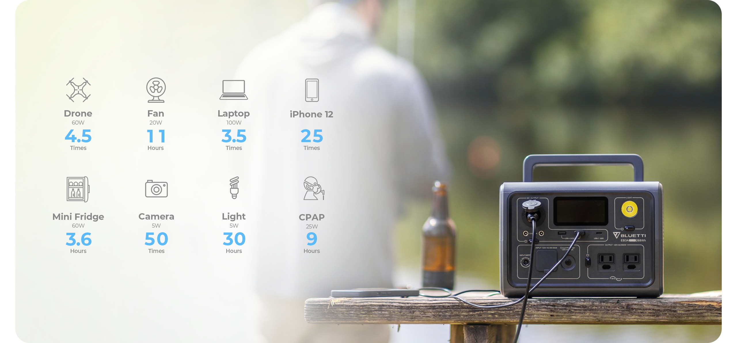 For EB3A, both DoD and η are 90%. If you run a 100W LED Light with it, the running time will be: