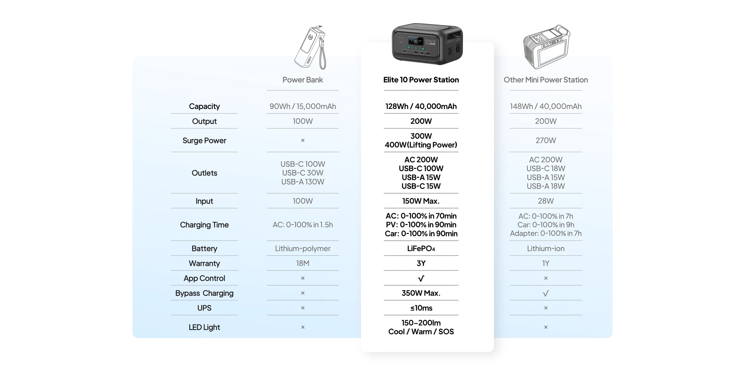 - Mini but Mighty: 128Wh capacity with 200W AC output in a palm-sized body.