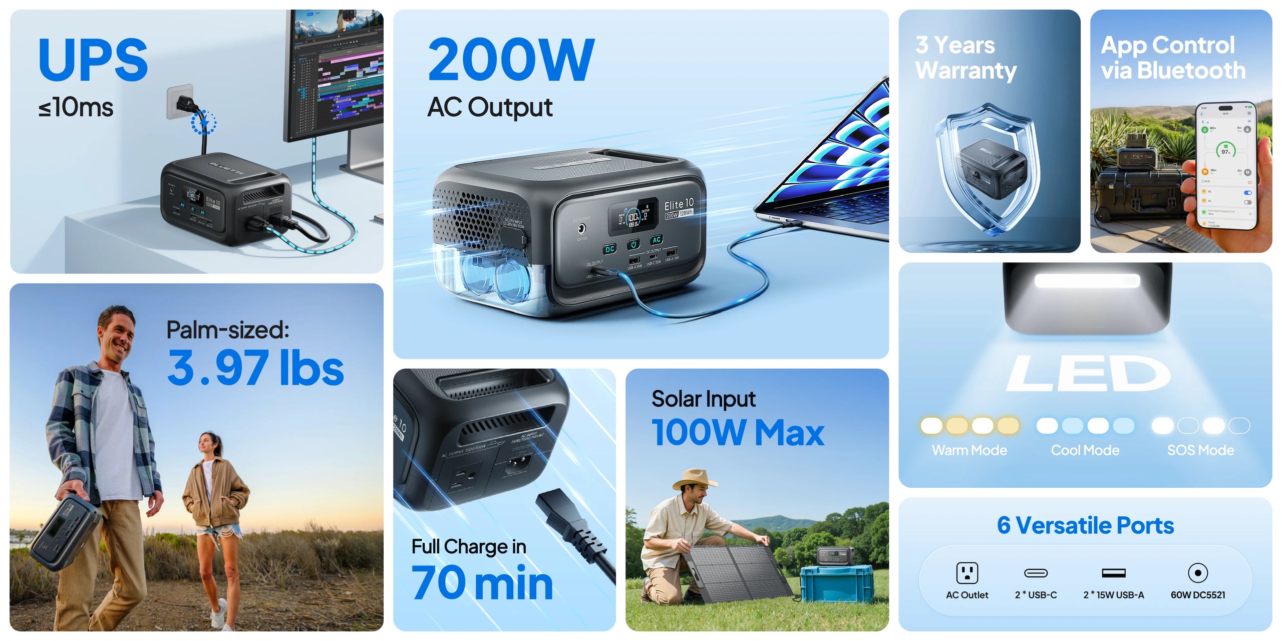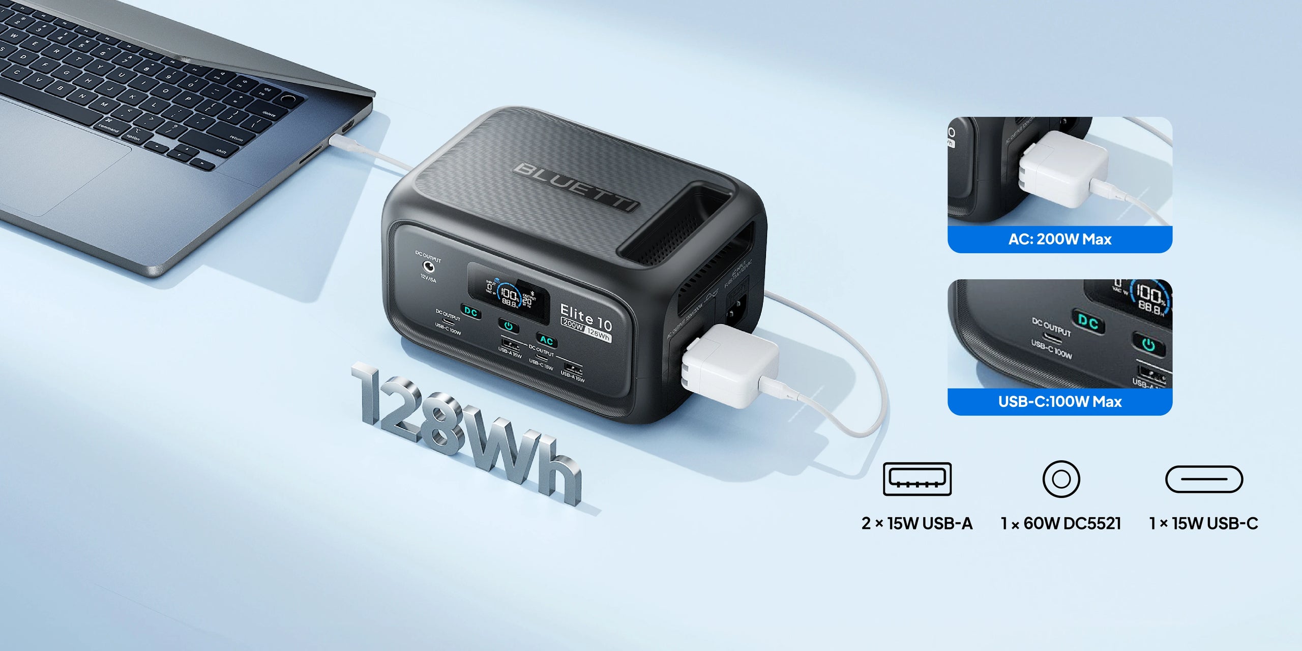 BLUETTI Elite 10 Portable Power Station | 200W 128Wh