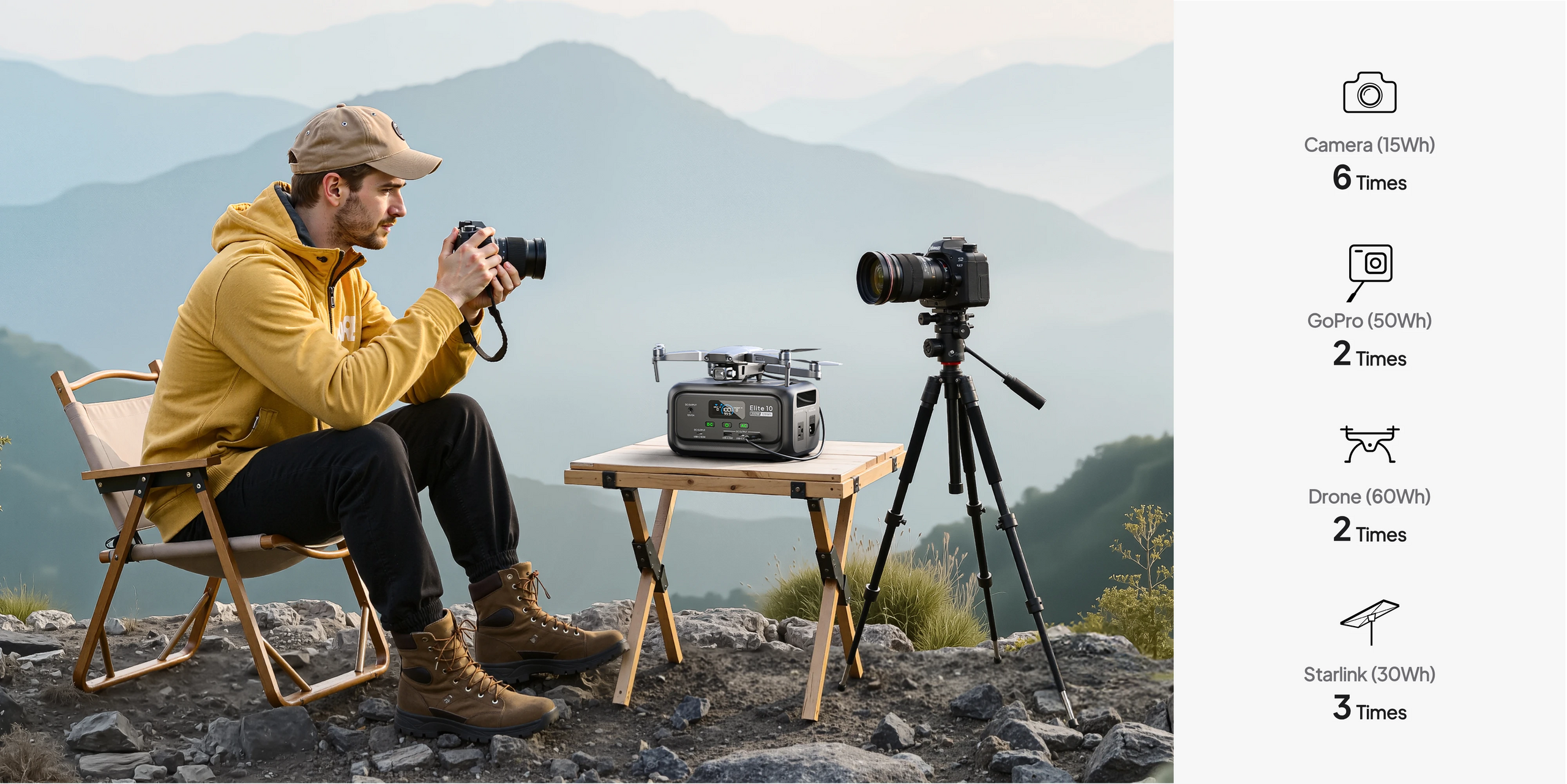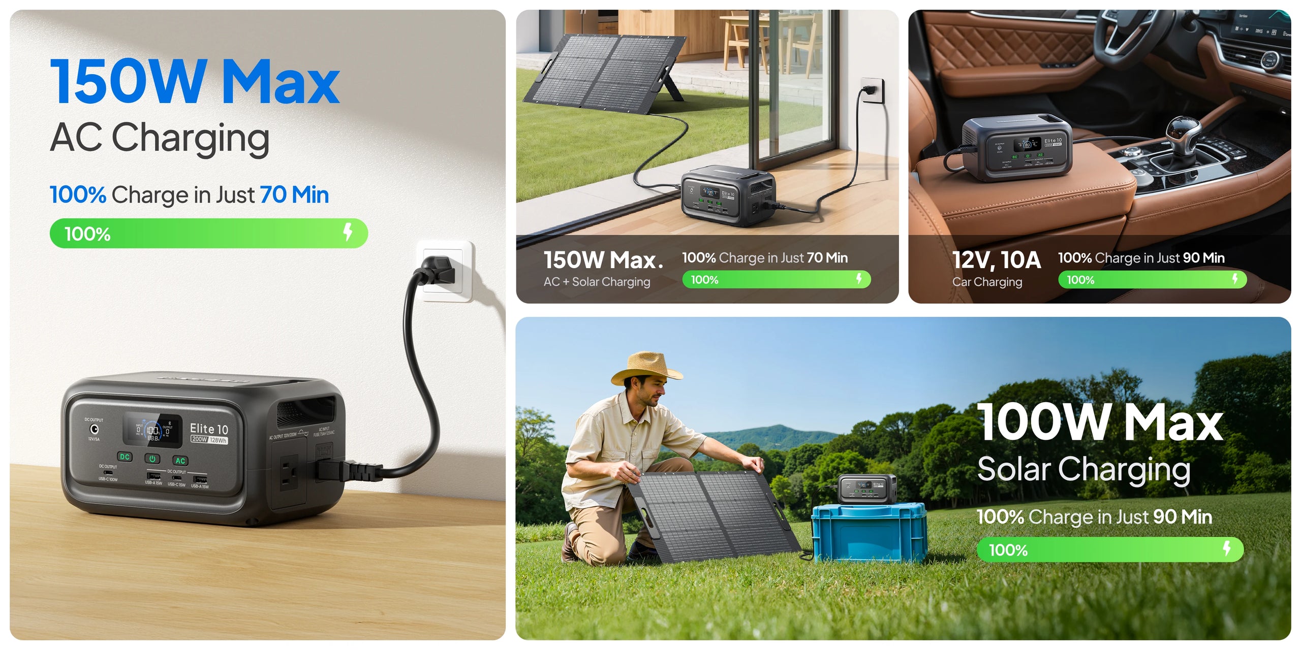 - 4 Flexible Charging Options: Supports AC, car, solar (PV60) and AC+solar charging.