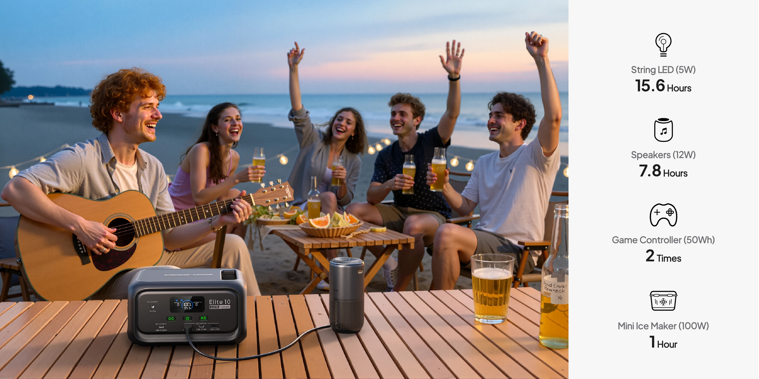 A:Estimated runtime = Total capacity × DoD (95%) × Inverter efficiency (90%) ÷ (Device power + Elite 10 self-consumption*)