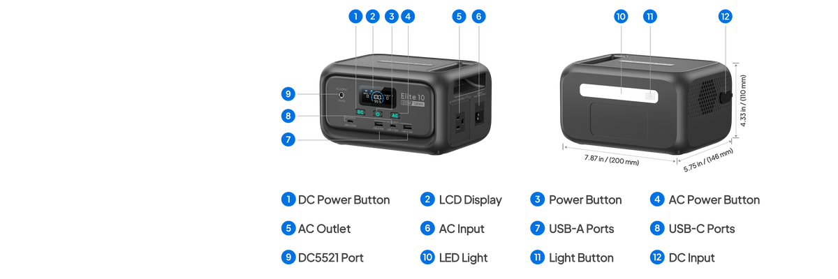 BLUETTI Elite 10 Portable Power Station | 200W 128Wh User Manual