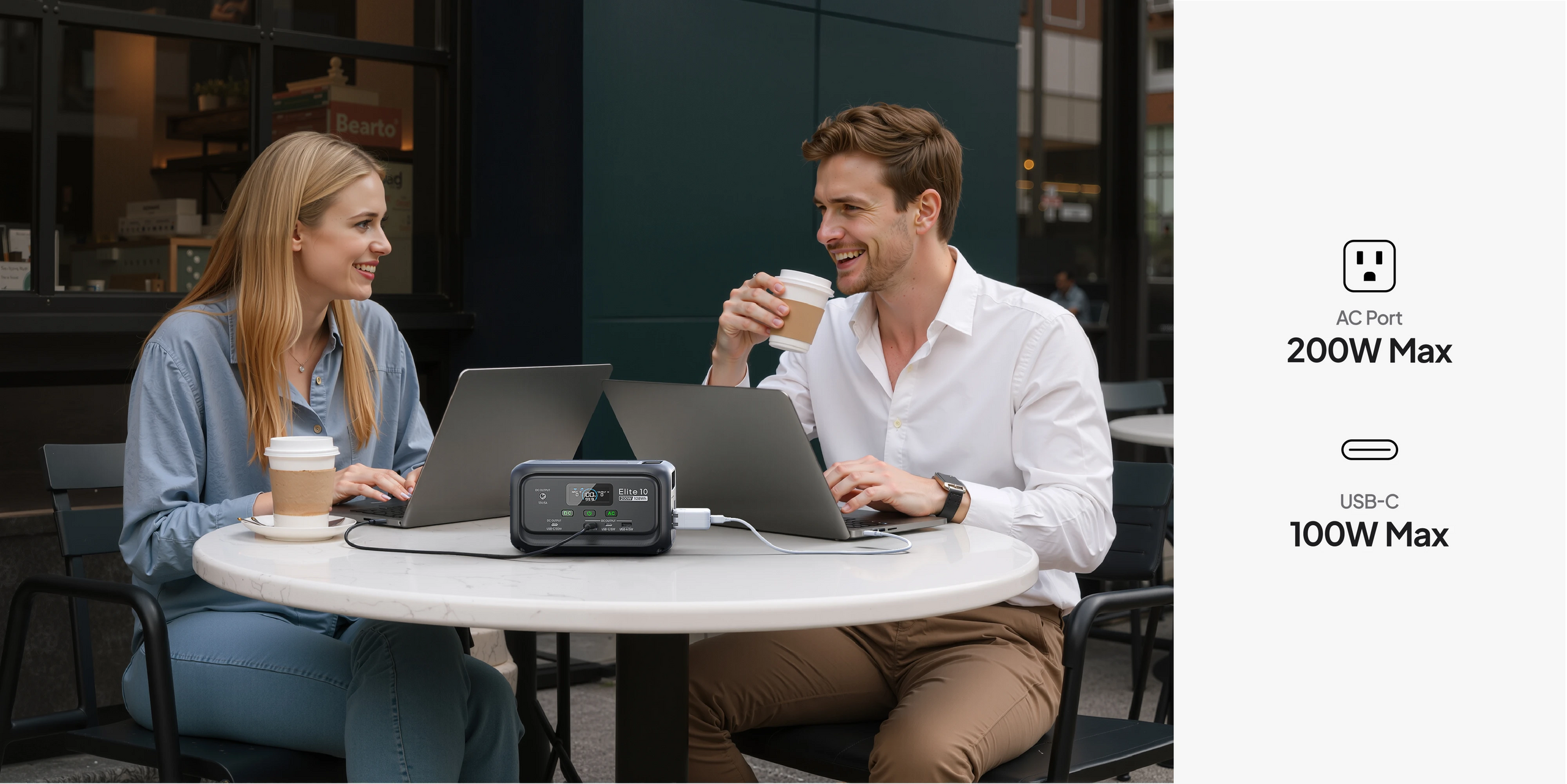 - 6 Outputs: 1 AC + 5 DC outlets power laptops, cameras, mini fridges, and more simultaneously.